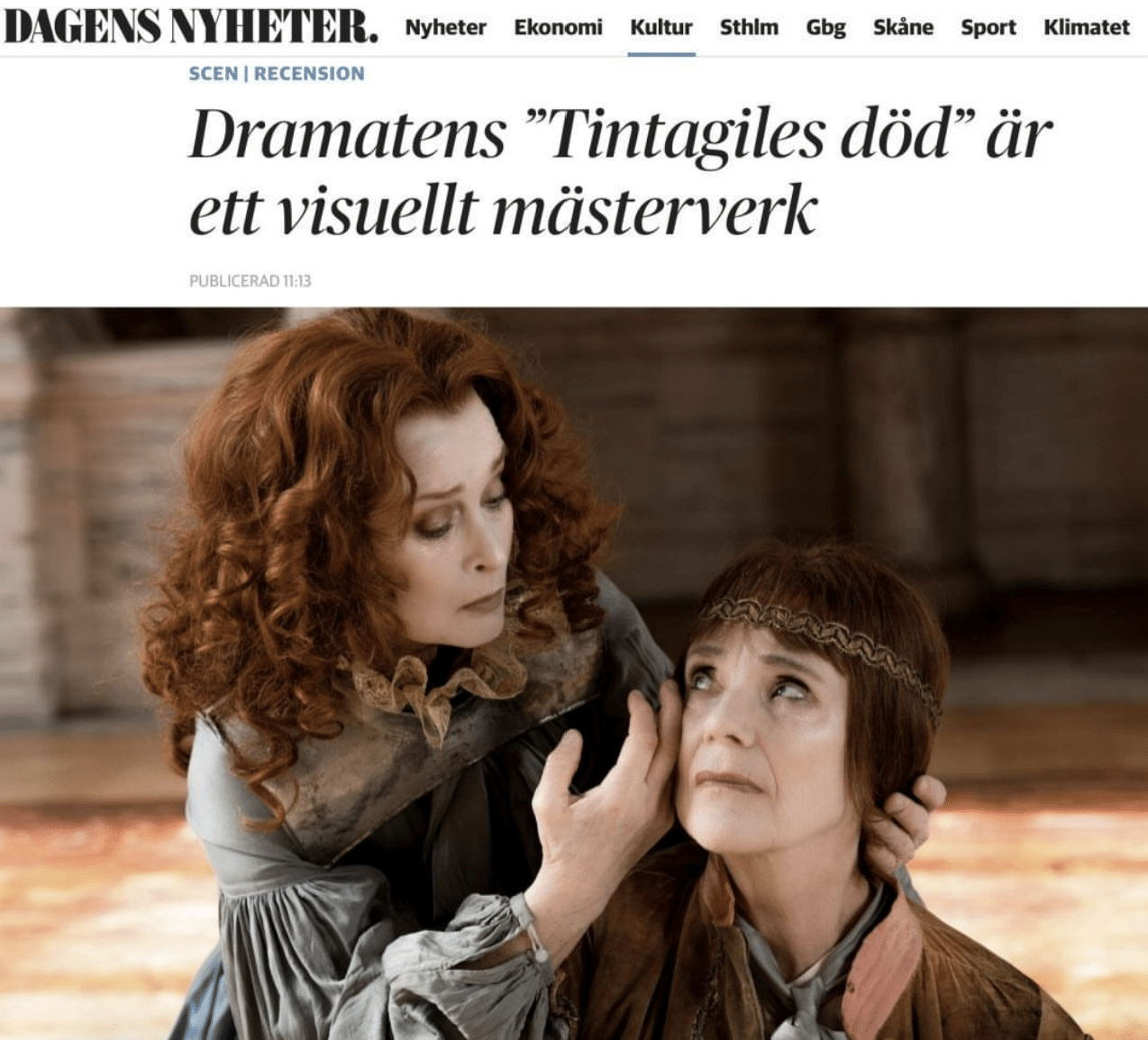 Expressen: "Alfons Karabuda's sorrowful, thriller-like musical score creates a stage, a fortress full of beauty and terror." THE DEATH OF TINTAGILES by Maurice Maeterlinck Translation: Maria Björkmark Concept and Direction: Wilhelm Carlsson Set and Costume Design: Marcus Olsson Music: Alfons Karabuda Cast: Stina Ekblad, Lena Endre, Erik Ehn, Nina Fex, Sofia Pekkari, Maria Salomaa, Nadja Weiss